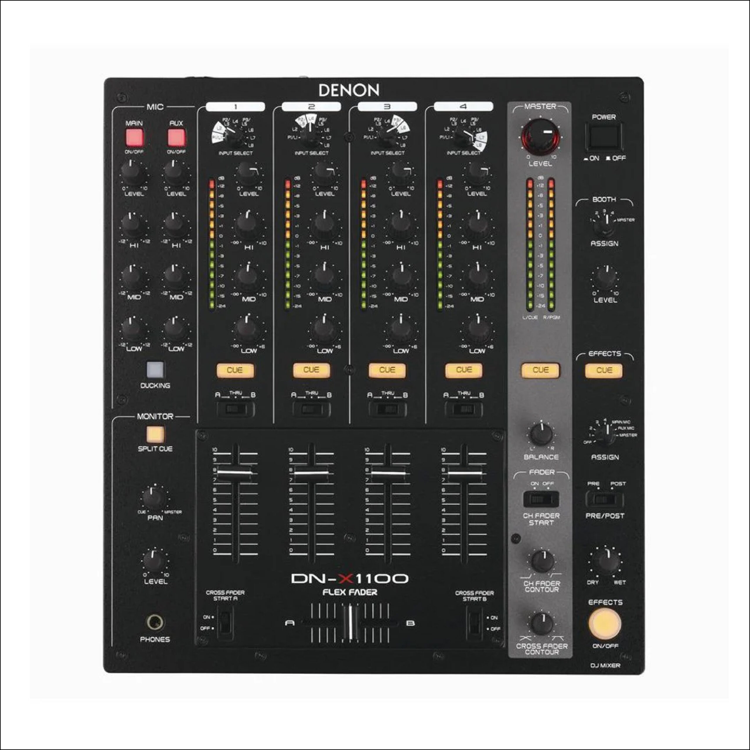 - Fader Start: sowohl Cross- wie auch Kanalfader Start Trigger sind möglich und mit sämtlichen DENON DJ CD/MP3/Media Playern sowie mit den Produkten der meisten anderen Premiummarken kompatibel